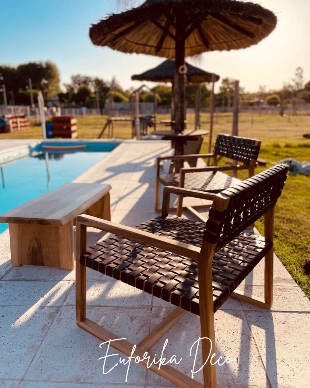 -Respaldo y asiento trenzado en cuero (color a elección)
